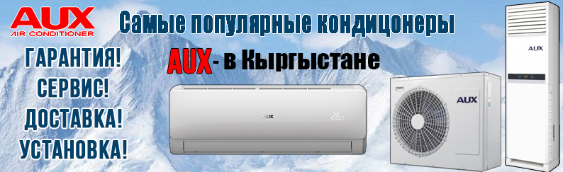Наша климатическая компания Кыргызстана, специализирующая на продаже кондиционеров AUX. Если вы не знаете где купить кондиционер в Бишкеке, если не знаете в какой магазин климатической техники обратиться, то звоните к нам. Мы обеспечим Вас кондиционером сплит — системой с доставкой. Кроме того, мы произведем ремонт, установку, переустановку, монтаж, демонтаж, дозаправку фреоном, сплит — систем любых марок, а также ремонт канальных кондиционеров в Кыргызстане. Кондиционеры AUX — самый узнаваемый бренд в Бишкеке, обеспечивающие оптимальный комфорт. Идеально подходящий для дома, кафе, швейного цеха, лекционного зала, большого холла и квартиры. Имеющие функцию зима-лето, высокое качество и самую доступную цену, кондиционеры AUX несомненно стали самым любимым и самым доступным кондиционером в нашей стране.
